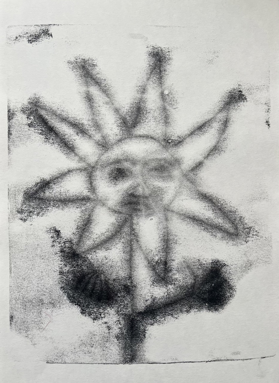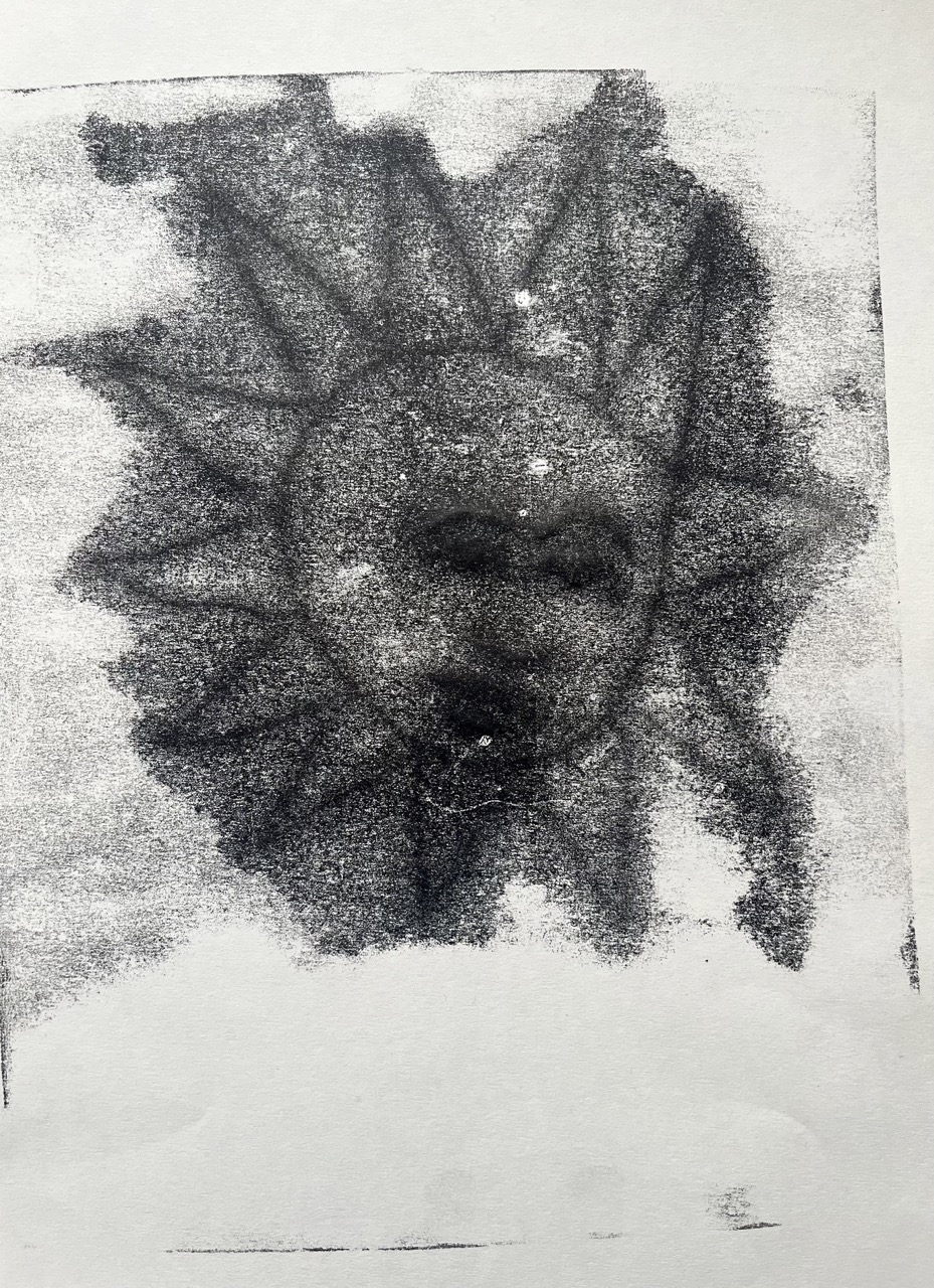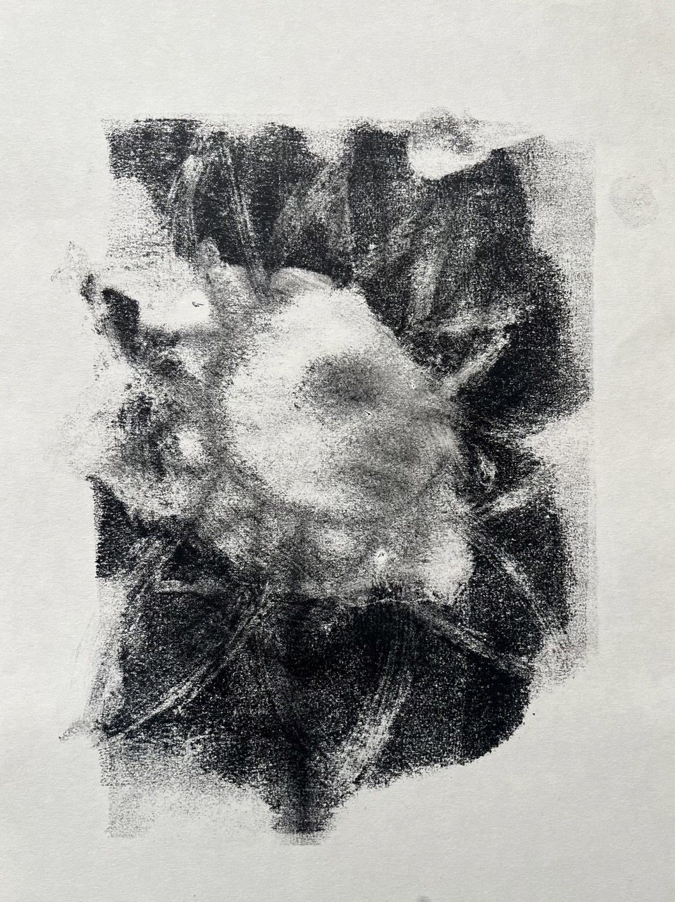 series of monotype self-portraits where the artist explores her sense of defenselessness during wartime