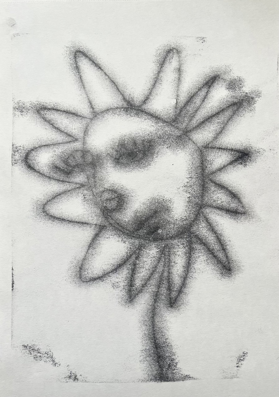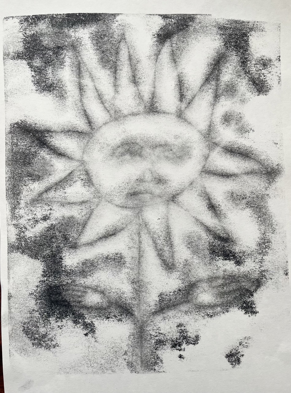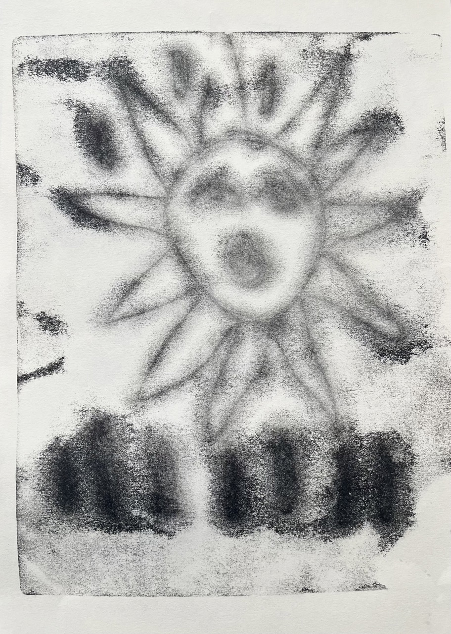 series of monotype self-portraits where the artist explores her sense of defenselessness during wartime